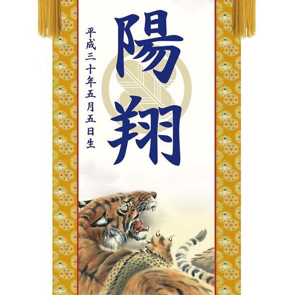 モダン友禅名入掛軸 透かし家紋 端午の節句 龍虎 専用スタンド・飾り房付 [大] [KTB-003-d][モダン友禅名入掛軸]端午の節句[受注制作7〜10日キャンセル]5000円以上お買上で北海道・沖縄・離島を除き国内送料無料(運賃弊社負担)"}