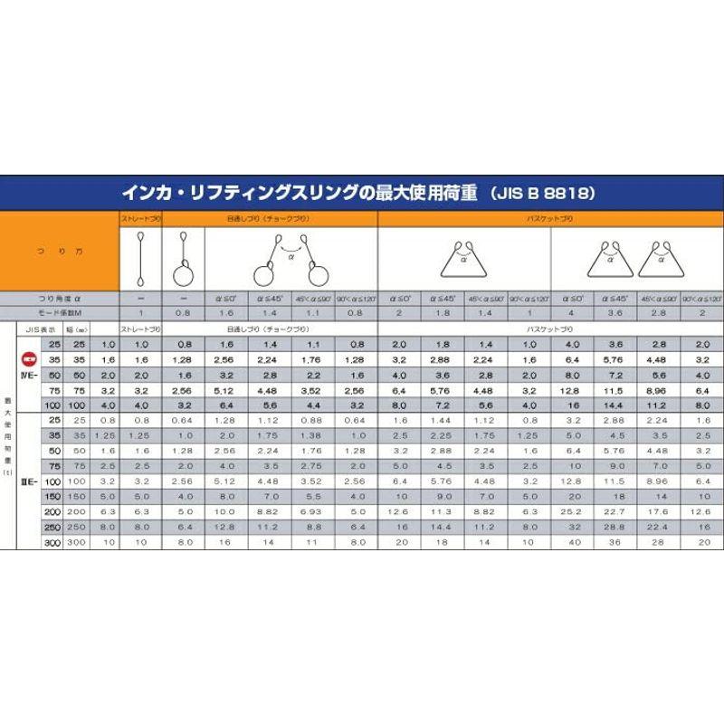 大洋製器工業 インカ リフティングスリング JIS 4E-25×5m 101-8600GN-C