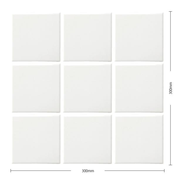 どんな空間でも主張しすぎない優しい色合いを揃えた、スタンダードな100角タイルです。■品番:FAT-01B■目地共寸法:約300×300mm■実寸法:約97×97mm■厚さ:約6.0mm■あたり枚数:11.5シート/平米■入数:18シート/ケース■特性:耐凍害性<関連キーワード>タイル 名古屋モザイク 施釉タイル デザイン内装タイル 白 ホワイト 内装壁タイル 内装壁用 屋内壁用 内装用 DIY diy おしゃれ 模様替え 部屋 壁面 施工 リビング 洗面所 洗面台 トイレ"} ■目地共寸法:約300×300mm
