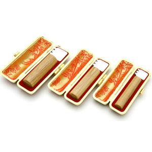 「楓(KAEDE)」は北海道の板屋楓とカナダ産のハードメイプルを使用した、環境との調和に配慮したECO印材です。自然そのままを活かした風格ある木目は同じものが全くなく、ときには虎目の美しい模様が楽しめます。上品さが人気の商品です。【印鑑ケース付き】■印鑑サイズ:実印用 15.0mm、銀行印用 15.0mm、認印用 12.0mm■ケース:印鑑赤ケース/金枠(朱竹)"}