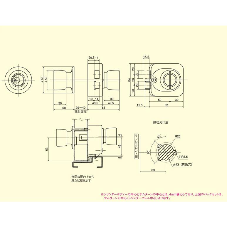 ユーシンショウワ 面付錠 516 [U-SHIN SHOWA 516] Xシリンダー仕様 握り玉 ドアノブ