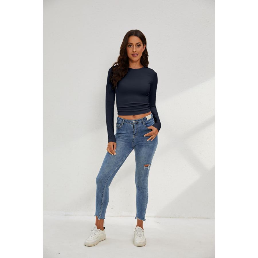 MISSACTIVER Women Workout Crewneck Long Sleeve Yoga Basic T Shir 並行輸入品