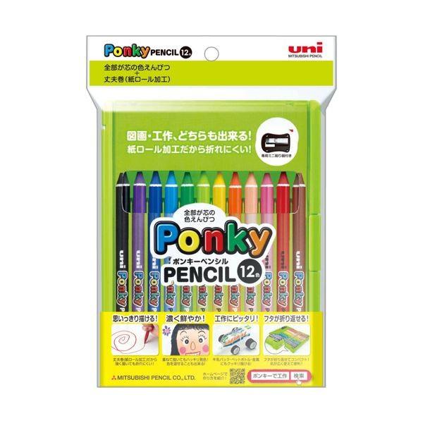 (まとめ) 三菱鉛筆 色鉛筆 800ポンキーペンシル 12色(各色1本) K800PK12CLT 1パック 〔×10セット〕