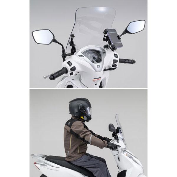 品番:97920LEAD125用をリニューアル。最新モデルまで全年式共通になりました。三次元立体曲面成型によりスタイリッシュなエアロフォルムを演出するとともに空気抵抗による疲労を軽減します。形状や特性に応じシールドはこだわりの車種専用設計。耐衝撃に強いポリカーボネートを採用。傷や汚れに強いハードコーティング仕様でクリアーな視界を長期にわたり確保。ウインドシールドの角度調整が可能な車体側取付ステーを採用。状況に合わせ約10度の範囲内でウインドシールドの角度調整が可能。付属のクランプバーを装着すれば市販のφ22.2パイプ用クランプが使用可能。スマートフォンなどのデジモノ装着に最適です。●スクリーン:ポリカーボネート製(ハードコート仕上げ)●角度調整機構付き(約10度)●メインブラケット:スチール製電着塗装ブラック●φ22.2クランプバー付属※ガソリン・シンナー等有機溶剤・コンパウンド入りのクリーナー等は使用しないでください。 【適合車種】LEAD125("13〜"23)[8BJ-JK12、2BJ/EBJ-JF45] JAN:4909449612934当社車種コード:当社分類種コード:品番:97920