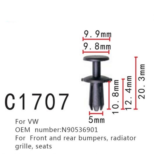 ラジエーター グリル シート ポジショニング ファスナー N90536901 適用: アウディ/AUDI A1 A3 A4 A5 A6 A8 フォルクスワーゲン/VOLKSWAGEN パサート フロント リア バンパー プラグ