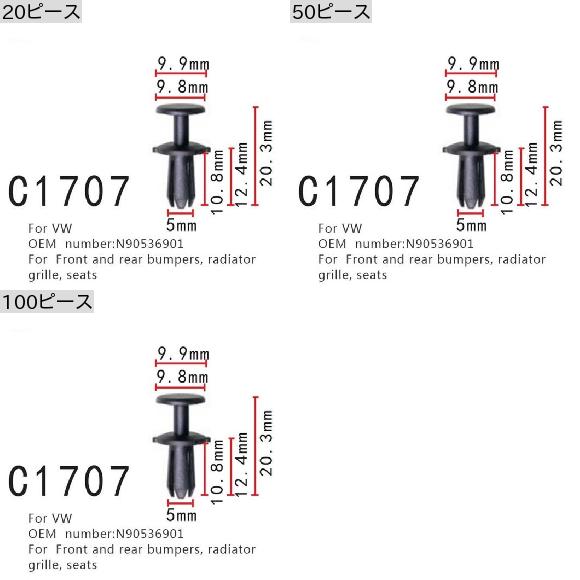 ラジエーター グリル シート ポジショニング ファスナー N90536901 適用: アウディ/AUDI A1 A3 A4 A5 A6 A8 100ピース AL-MM-0923 AL