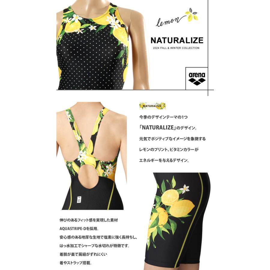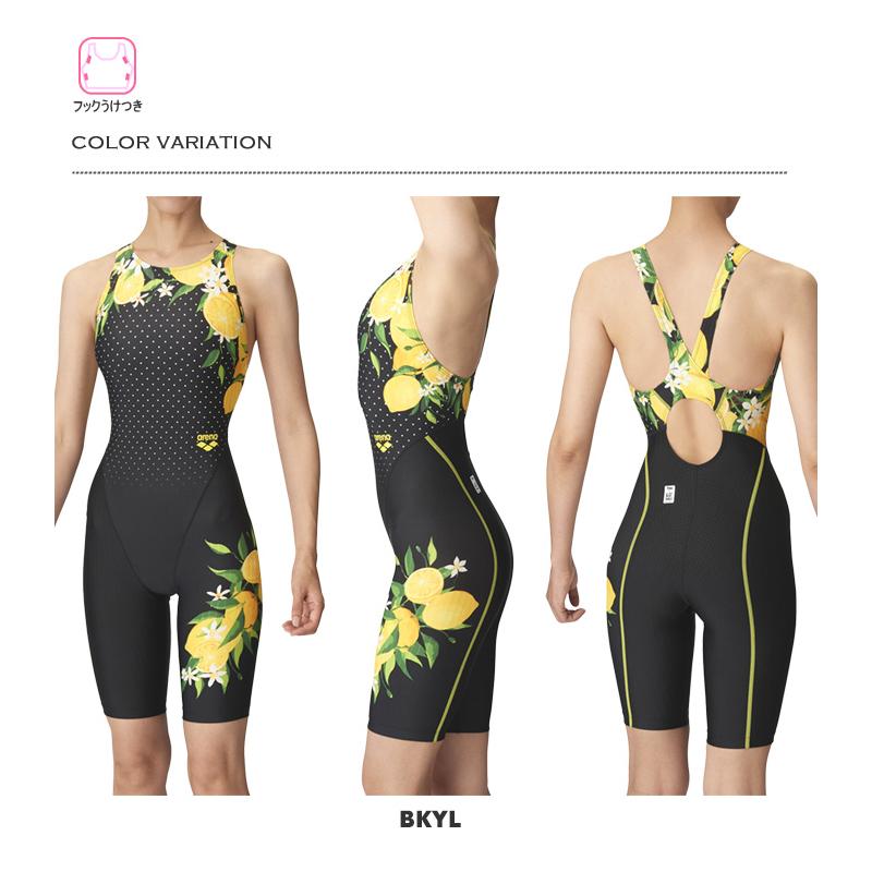 ■大会出場可能なWORLD AQUATICS(FINA)承認モデルレディスハーフスパッツ競泳水着レーシングワンピーススパッツ (オープンバック・ハーフレッグ・着やストラップ)■カラーBKYL:ブラック×イエローNVYL:ネイビー×イエロー■素材AQUA STRIPE-Dポリエステル ・ ポリウレタン■サイズ/股下/裾幅(約)【Mサイズ】24cm/14.5cm※ 1サイズごとに約±0.5〜1cm変わります■胸パット:なし/フックうけ:あり◇中国製◆サイズにご注意下さい◆この商品は競泳用です。競泳水着の生地は伸びが少なく、個人差がございますがフィットネス用の水着と同じサイズだときつい場合がございますので、ご注文の際はお気をつけ下さいませ。※商品によって柄の出方・配置が異なります。初級スイマーへ向けたAQUA RACINGシリーズ。従来のモデルより生地の柔らかさを改善し、伸びのあるフィット感を実現した素材AQUASTRIPE-Dです。安心感のある地厚な生地で塩素に強く長持ちし、はっ水加工でシャープな水切れが特徴の競泳水着です。レースに出場するスイマーにお勧めです。着脱が楽で肩紐がずれにくい着やストラップ搭載。今季のデザインテーマの1つ「NATURALIZE」。元気でポジティブなイメージを象徴するレモンのプリント、ビタミンカラーがエネルギーを与えるデザイン。レモンモチーフを胸元に華やかに見えるように配置しています。背景にドットを置くことで少し可愛らしいイメージにしています。