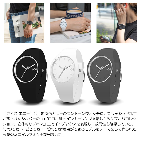 無彩色ワントーン × シルバーパーツ の究極ミニマルウォッチ“いつでも・どこでも・だれでも”着用できる「アイス エニー」■サイズ:(medium)40mm■ケース/バンド:シリコンラバー■その他:レンズ:ミネラルガラスリューズ 、 バックル 、 ケースバック:ステンレススチールムーブメント:日本製クォーツ防水性:10気圧防水※記載は商品仕様の一部です。仕様説明不足等の理由での返品はできません。特に適合等は必ずご確認ください。■ ICE WATCH(アイスウォッチ) ■