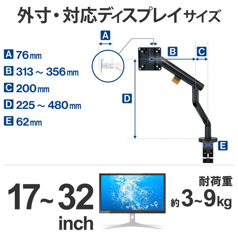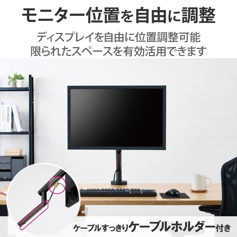 【ELECOM / エレコム】モニターアーム ロング アーム シングル 1画面 メカニカルスプリング式 【 モニター 17〜32インチ対応 】ブラック [▲][EL]