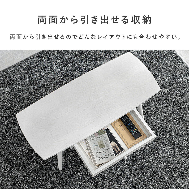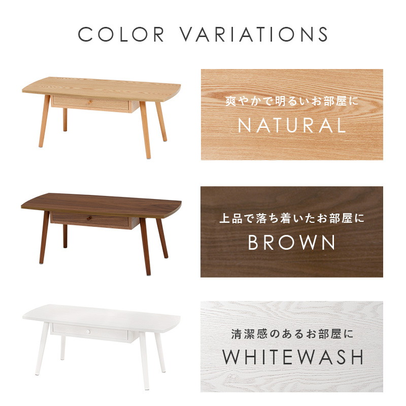 ■商品説明木の優しい風合いを感じられ節や木目が一品ごとに異なり味のある天然木突板ローテーブルです。●使い勝手の良い収納も備わり、リモコンや雑誌、日記、手帳、メガネからA4サイズの紙類まで便利に収納!●引出し収納部分は両面から引き出せるので、どんなレイアウトにも合わせやすく出来ています。●天板は熱や傷、汚れやシミをつきにくくするUV塗装を施しています。天然木突板を使ったカラーは3種類ブラウン:アメリカンウォールナット材 耐衝撃性に優れ木目が美しく揃っており高級家具にも使用されます。ナチュラル:タモ材 はっきりとした木目が特徴的。お部屋が明るくナチュラルな色合い。ホワイトウォッシュ:タモ材 白く柔らかい木目の風合いでお部屋の印象がパッと明るくなります。■商品詳細サイズ(約):幅95×奥行40×高さ37cm収納サイズ(約):幅44×奥行32×高さ4.5cm素材:ブラウン天板:MDFウォールナット突板(UV塗装)ナチュラル・ホワイトウォッシュ天板:MDFタモ突板(UV塗装)脚:樺材(ラッカー塗装)組立:組み立て式table/ローテーブル/木製/天然木/お洒落/おしゃれ/新生活/一人暮らし/1人暮らし/必要な物/おすすめ