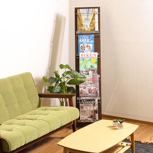 ウッド マガジンラック 雑誌収納 5段 スリム 幅30cm×奥行50cm 折りたたみ式 デコール 組立品 リビング ダイニング〔〕[21]