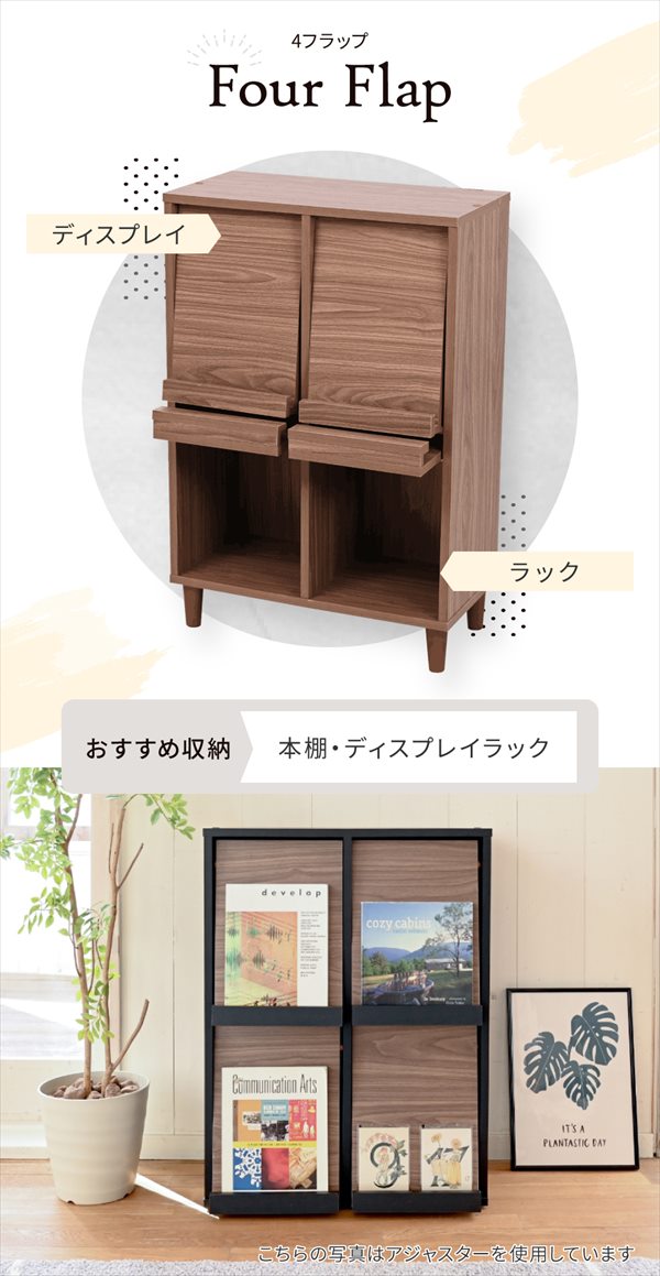[10%off] Adatto 4フラップタイプ ラック 幅60cm ラック シェルフ 本棚 その他収納ラック FSI-0003 サイドボード モダン キャビネット 扉付き ディスプレイラ