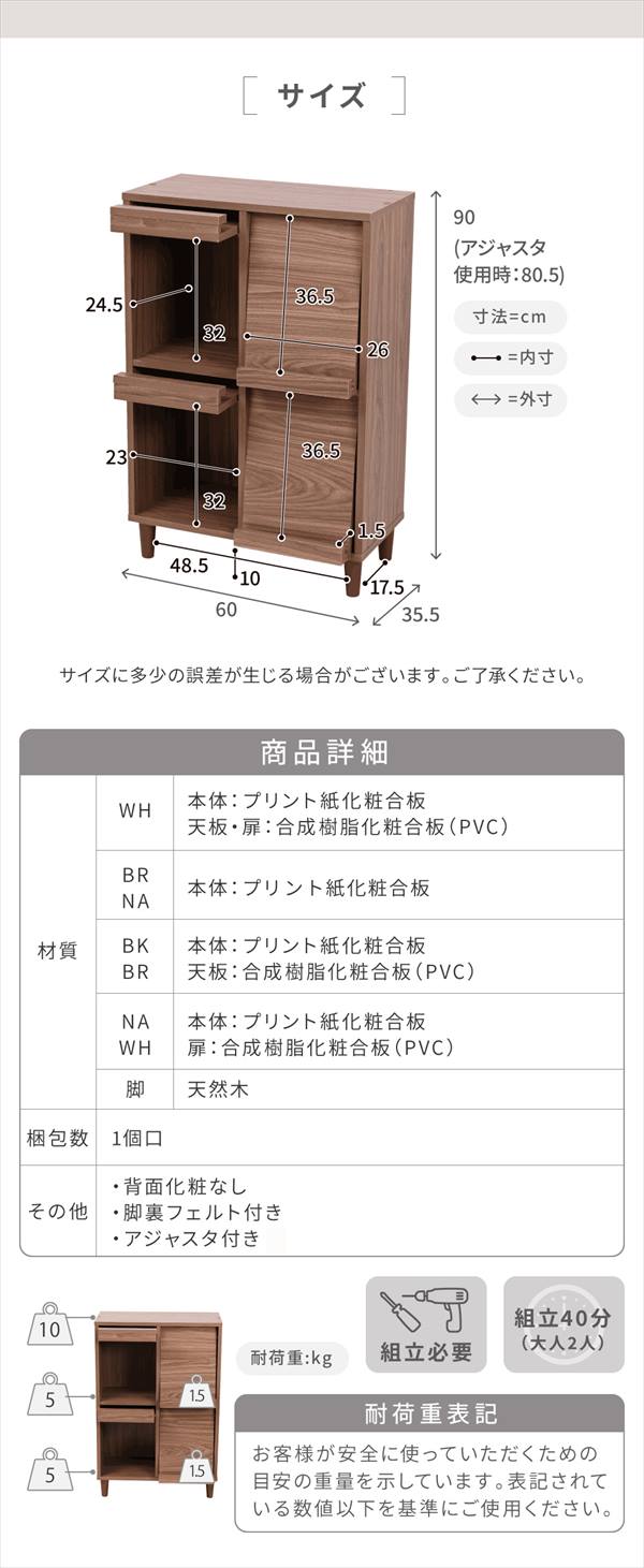 サイズ:外寸:幅60×奥行35.5×高さ90(アジャスター80.5)cm