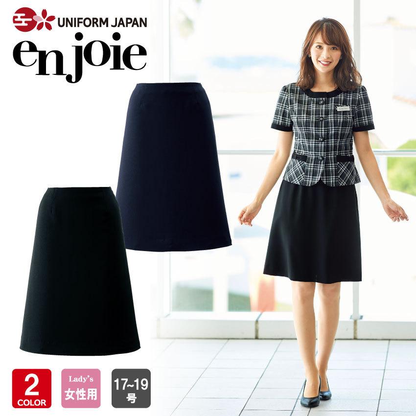 アンジョア Aラインスカート 56613 レディース 春夏 ネイビー ブラック 17号-19号 事務服 制服 可愛い