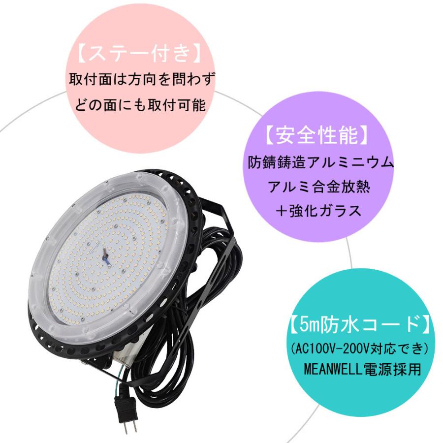 [特価販売]LED高天井灯 UFO型 高天井照明 150W 24000LM 1500W相当 IP65屋内/屋外兼用 角度調整可 工場 倉庫 高天井 ハイベイ作業灯 落下防止用ワイヤ付き 昼白色