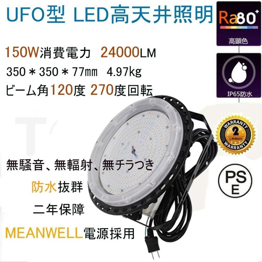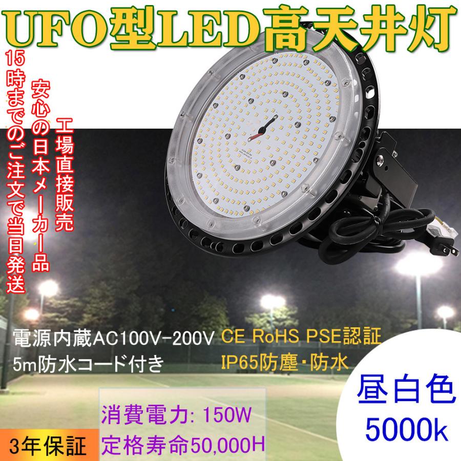【工場直接販売 】LED高天井照明 ufo型led投光器 ハイベイライト150W 24000lm 1500W水銀灯相当 高天井用led IP65防水 屋内屋外兼用 二年保障 昼白色