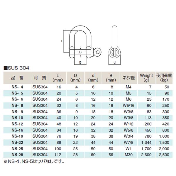ふじわら ネジシャックル SUS304 使用荷重2000kg ネジ径W1 品番NS-25
