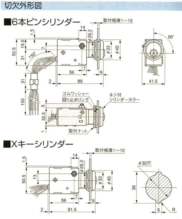 各シリンダーの切欠外形図は下記の図をご確認ください。