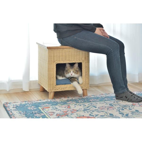 ペットと一緒にくつろぐことができるペットハウススツール。スツールとしてはもちろん、テーブルとしても使用できます。