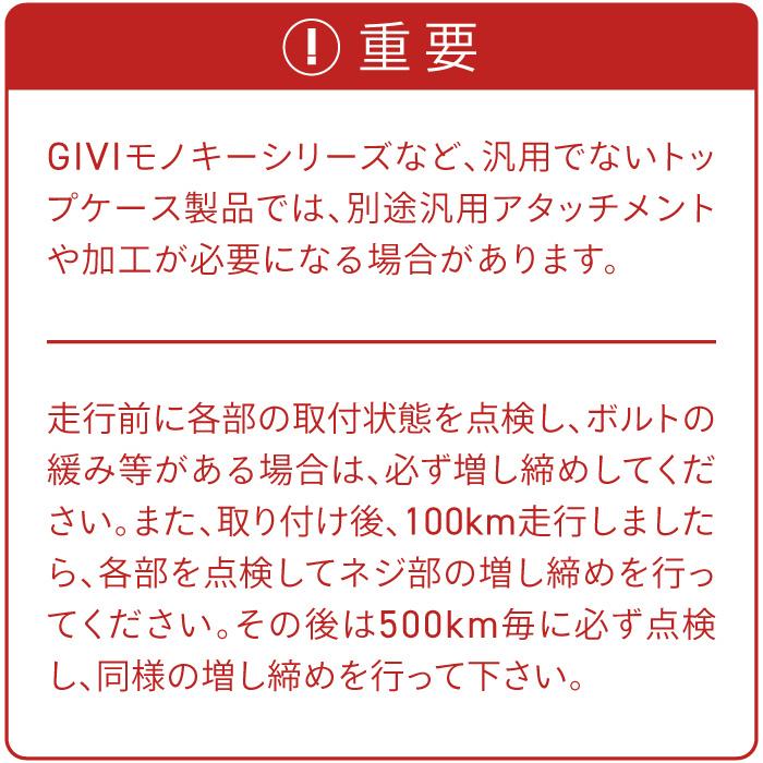 ※ GIVI モノキーシリーズの場合、汎用アタッチメントが必要です。K-MAXには対応しません。