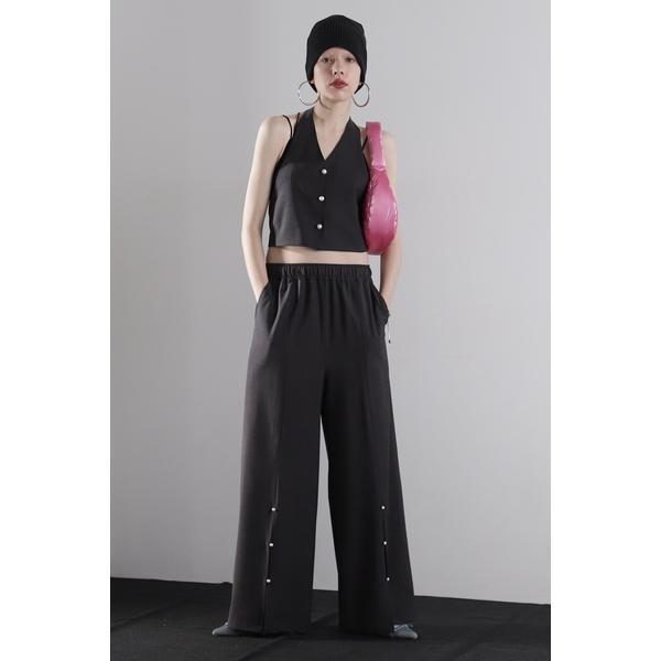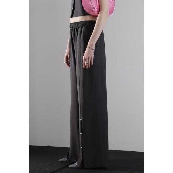 メランジでマニッシュな印象のスーツ素材を使用し、ワイドで格好よく履きこなしてもらえるシルエットに仕上げました。