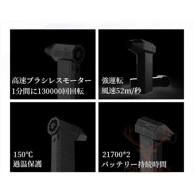 ?超長のバッテリー持続時間、1つのモードで最大4時間使用可能、電池容量は3,000mAhの大容量。充電はUSB Type-C。?130,000rpmの強力な風力。強運転は風速52m/秒の強い風が出る?高速ブラシレスモーターが搭載されているので、1分間に13万回も回転。安定した強い風量が特徴。?温度が150℃を超えると、ファンは自動的に停止し、危険な高温を防ぐためです!?機器やО〓機器の掃除など色々な用途で使えます。?高硬度で高温耐性のある素材で作られたミニブロワージェットファンは、完璧な質感を備えているだけでなく、強力なパワーと低発熱も発揮します。 インダストリアルスタイルのデザインは耐久性と信頼性を保証し、屋外での使用に最適です。