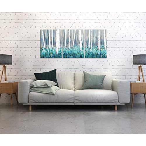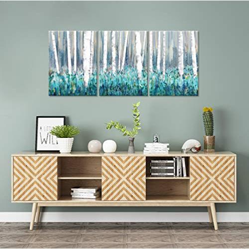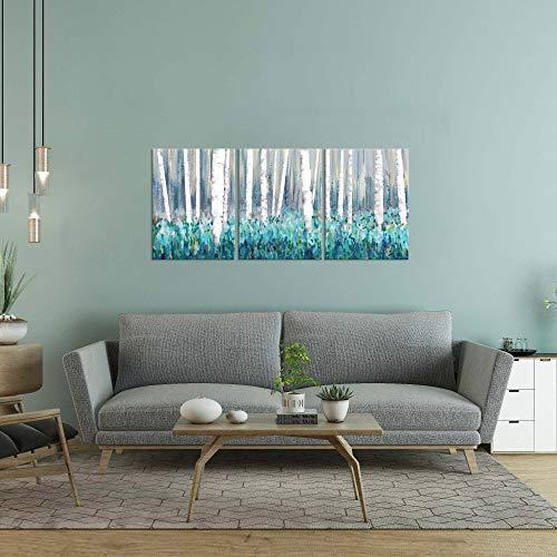 ZingArts キャンバスウォールアート ホワイト ブルー 樺の森 自然 植物 緑の木 風景 絵 抽象画 アートワーク 額入り ホーム 並行輸入
