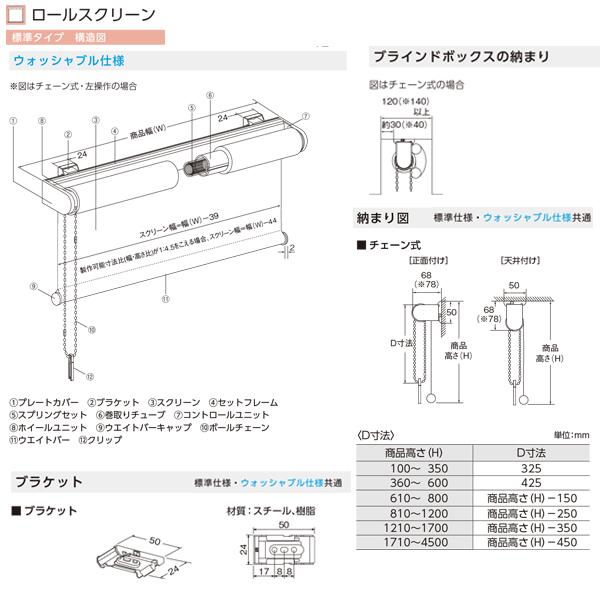 ニチベイ ロールスクリーン ソーノ 標準タイプ ウォッシャブル仕様 チェーン式 幅305〜500mm 高さ1610〜2000mm