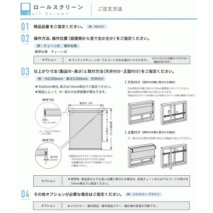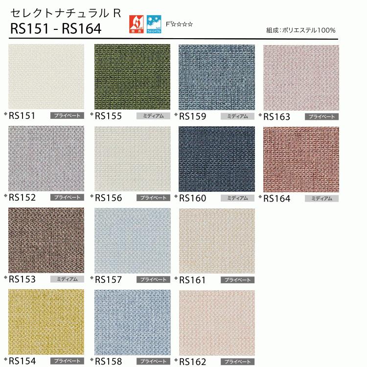 サンゲツ ロールスクリーン RBコレクション ■セレクトナチュラルR RS151〜RS164幅広いサイズに対応、お部屋を広くスッキリと見せます。特に小窓や腰窓におすすめ、間仕切りや目隠しにも。メカタイプ:標準T型操作方法:チェーン式メカカラー:ホワイト裾仕様:ラッピング(袋縫い)※操作方法・メカカラー・裾仕様は変更ができます。機能:防炎・ウォッシャブル組成:ポリエステル100%製作可能寸法比率(巾:高さ)1:8 ※ワンタッチチェーン式・プルコード式は1:3巾5mm単位、高さ10mm単位でオーダー製作いたします。高窓等、製品高さよりも高い位置に取付ける場合は、チェーンの長さを10mm単位でご指定ください。画像の色とは多少異なる場合があります。