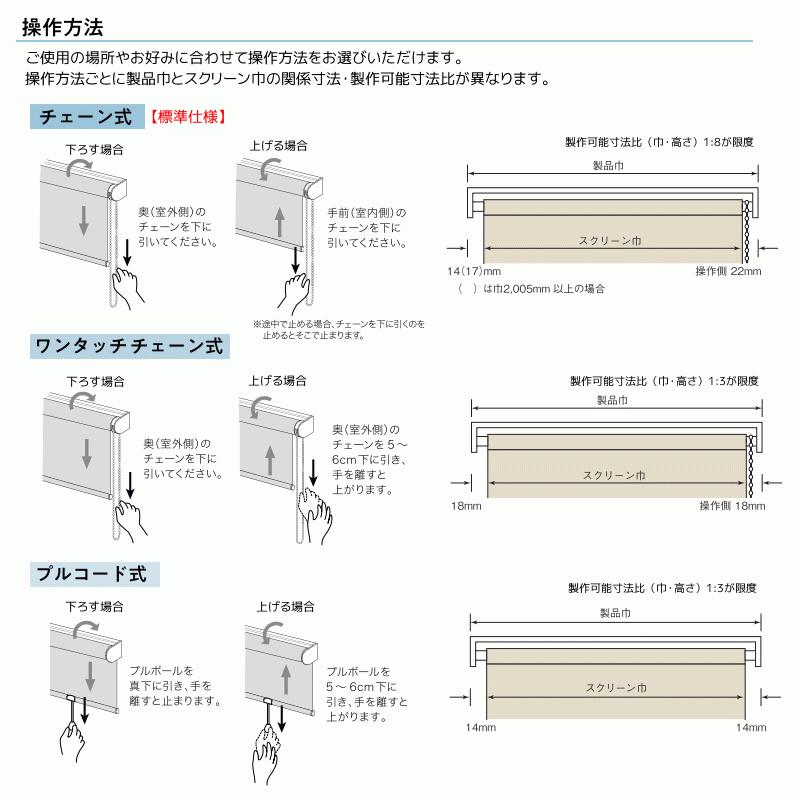 ■ロールスクリーン仕様書(チェーン式/ワンタッチチェーン式/プルコード式)