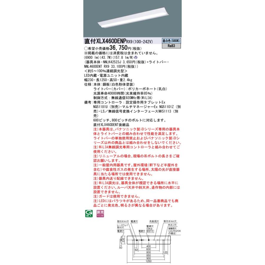 [法人限定] XLX460DENP RX9 パナソニック iDシリーズ 天井直付型 富士型 40形 WiLIA無線調光 一般タイプ 6900lm 昼白色 [ XLX460DENPRX9 ]