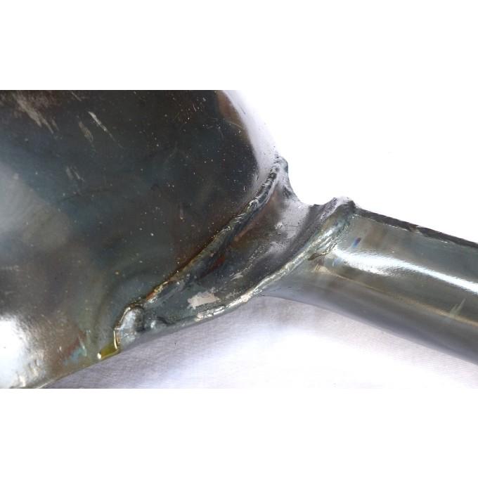 山田工業所 鉄 打出片手中華鍋45cm(板厚1.6mm)●サイズ:直径45cm●板厚:1.6mm●重さ:2,670g●深さ:130mm●材質:鉄●メーカー:有限会社 山田工業所山田工業所 鉄 打出片手中華鍋45cm(板厚1.6mm)は、鉄の打出しにこだわった山田工業所のプロ用北京鍋。1枚の鉄板を、職人さんが丹念に機械のハンマーで打出して成型してます。約5000回も叩くとか。鉄は叩くことで素材の構造が密になり丈夫で使いやすくなります。打ち跡が微妙に残りますので、油のなじみも良くなります。軽く使えるように、板厚は1.6mmです。山田工業所製の中華鍋・北京鍋は、プロの世界ではシェアNo1ブランドです。なお、鉄鍋なので使い始めは空焼してください。板厚1.6mmのシリーズには8サイズありますが、このページの商品は直径45cmです。