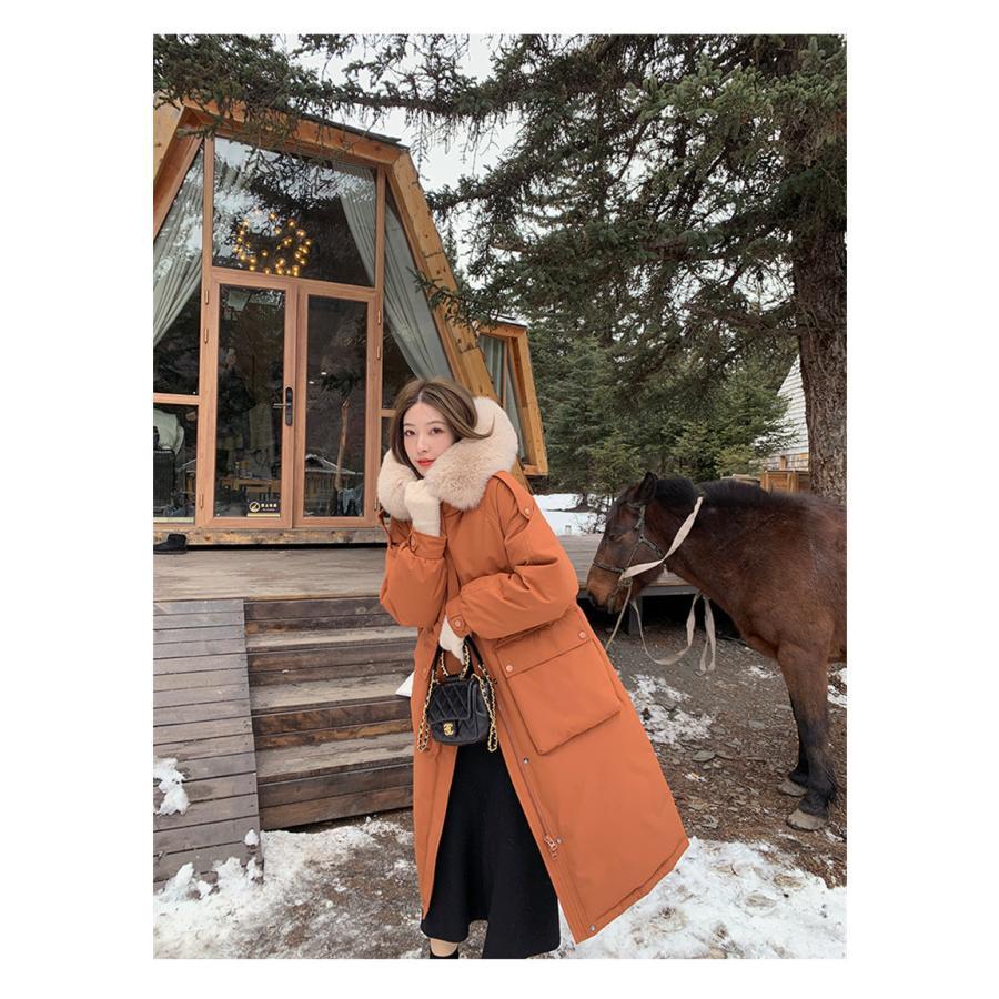 ダウンコート レディース ダウンジャケット ロング フード付き 膝丈 アウター 無地 カジュアル ゆったり 防風 防寒 通勤通学 おしゃれ お出かけ