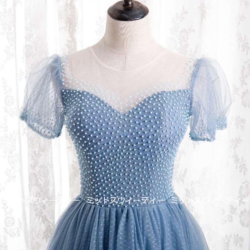 カラードレス 演奏会 青 ロングドレス コンサート パーティードレス ブルー 発表会 二次会 結婚式 ステージドレス イベント衣装 成人式 パール フロア丈 可愛い
