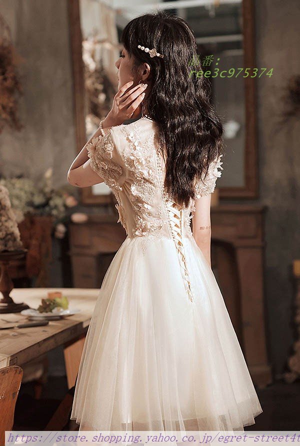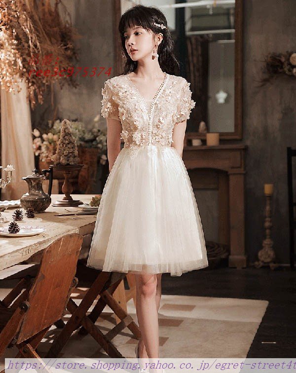 ショートドレス ドレス 大人 ピアノ 発表会 袖付き 二次会 膝丈 フォーマル 披露宴 可愛い ワンピース Aライン 成人式ドレス Vネック