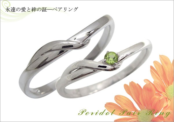 ![]() 8月誕生石ペリドットを一粒使用したシルバー製の、 シンプルデザインのマリッジリング(結婚指輪)です。 ペアリングとしてもお勧めの商品です。