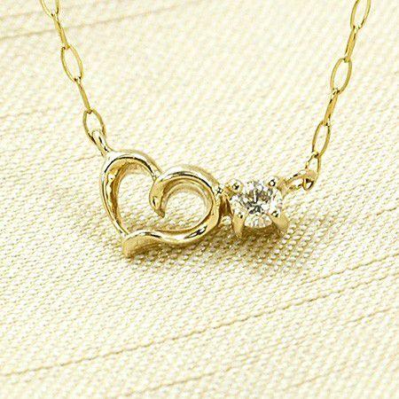 ■スタッフのコメント オープンハートとダイヤモンドがキュートなネックレスです。オープンハートは普通のハートよりエレガントな印象を与えてくれるモチーフ。大人っぽくしたい、でも可愛いのがいい…そんな貴方の願いをどっちも叶えてくれる、万能アイテムなんです♪そんなオープンハートの横には、ダイヤモンドが一粒キラリ輝きます。ぷっくりしたシルエットのオープンハートと、さりげなく輝くダイヤモンドが、デコルテを大人可愛く彩ってくれます。■宝石ダイヤモンド0.03ct/直径2mm×1石■材質10金イエローゴールド(K10YG)■サイズトップ(マルカン含まず)/タテ4.5mmヨコ8.1mm長丸アズキチェーン/長さ40cm太さ0.75mm※端から3.5cm位置のマルカンを使用して40cmと36.5cmで着用可能■備考トップとチェーンの取り外し。■納期約4週間■配送宅急便"}