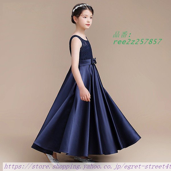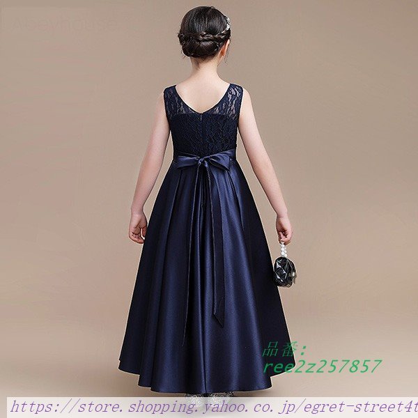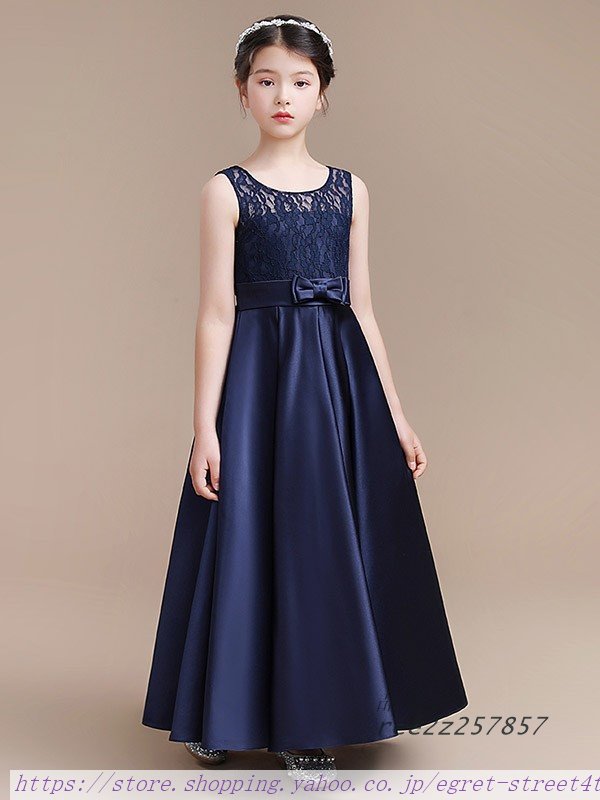 子供ドレス ワンピース ロングドレス ピアノ発表会 子供 ドレス ネイビー レース 結婚式 フォーマルドレス ノースリーブ サテン 女の子