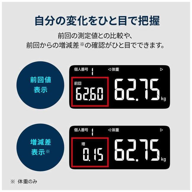 基本仕様タイプ体組成計測定方式両足測定精度50g:2〜100kgまで100g:100〜135kgまで自動測定○電池種類単4形アルカリ乾電池 4個(LR03)電池残量警告機能○登録人数4 人測定機能内臓脂肪○ 体内年齢○基礎代謝量 (BMR)○体脂肪率○BMI○  通信機能 Bluetooth対応○スマホ連動機能○サイズ・重量サイズ327x30x249 mm重量1.7 kgカラーカラーブラック KRD-608T2-BK OMRON 体重体組成計 カラダスキャン connect対応