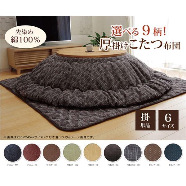 こたつ布団 〔単品 円形 刺子調 ネイビー 約225cm〕 厚掛けタイプ 洗える 表地:綿100% 〔リビング ダイニング〕〔〕