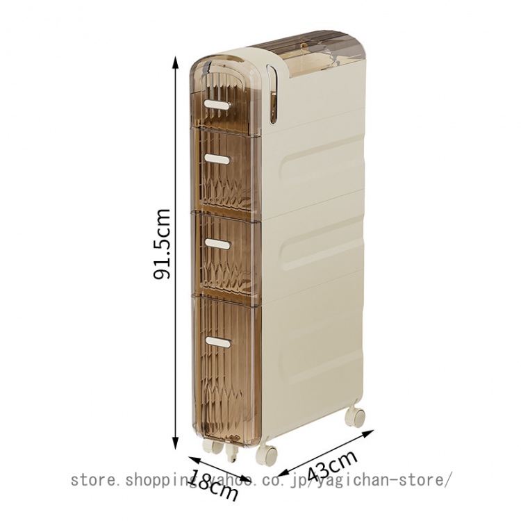 「サイズ」(cm)4段(4層):幅43×奥行18×高さ91.5cm ★たっぷり入る収納ボックス★360°可動キャスターで移動が楽々★使いがってが良く、キッチンやリビング、洗面所などあらゆるシーンで活躍★キッチン(台所/料理)/ランドリー(洗濯・洗面・お風呂場・脱衣所)/デスク(書斎/勉強/子供部屋)お客様のご都合による交換・返品の場合商品到着後7日以内にメール・おにてご連絡をお願い致します。ご連絡を頂いた後、当店よりご案内をさせて頂きます。"}