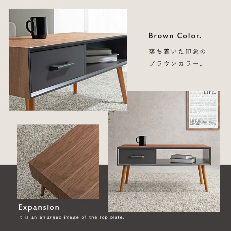 引出し付き センター テーブル リビングテーブル 引出し付き センター テーブル リビングテーブル 木脚 木目 ローテーブル ソファテーブル ソファーテーブル カフェテーブル コーヒーテーブル パソコンテーブル モダン 西海岸木目が映えるシンプルでモダンなデザイン。使い勝手の良い収納付き。幅80cm"}