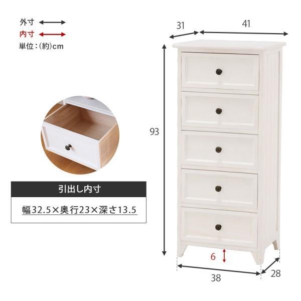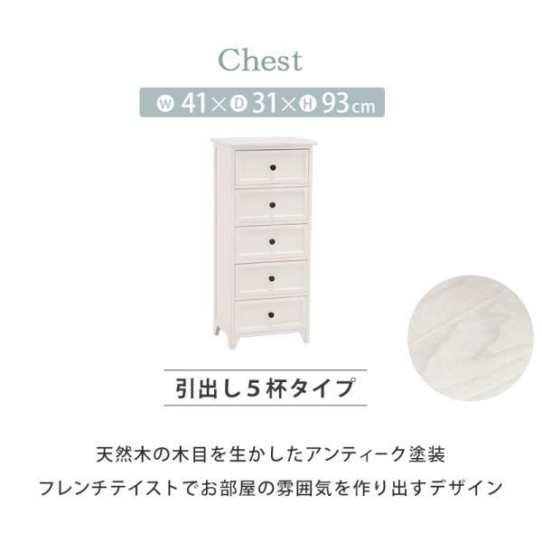 ■商品紹介シンプルなデザインのチェストをフレンチアンティーク風に仕上げています。一人暮らしで使いやすいコンパクトサイズ。■サイズ(約)(約)幅41×奥行31×高さ93cm■材質主材:桐材■補足説明■引出内寸:約幅32.5×奥行23×深さ13.5cm■個口数(目安)1個口■備考※商品仕様は予告なく改良となる場合があります。※ご使用のモニター環境によって色味が違って見える場合などがございます。※北海道・沖縄・離島への配送は別途お見積りとなります。事前にご住所・郵便番号などでお問合せをお願い致します。※はご利用いただけませんのでご了承くださいませ。※一部地域により配送の場合がございます。"}