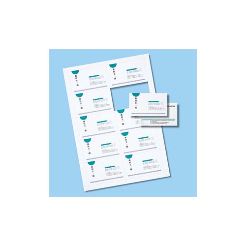 | マルチタイプの名刺。信頼性のある厚手タイプで、文字やイラスト中心の印刷に。 ミシン目で折り曲げて切り取るお手軽タイプの名刺カード。 インクジェットプリンタ、レーザープリンタなどプリンタを選ばず使えるマルチタイプ。文字やイラスト中心のお手軽印刷に最適。※ただし、インクジェットプリンタで写真画像をきれいに印刷する用途には向きません。写真画像を美しく印刷するには、インクジェット専用名刺カードをお使いください。 0.235±0.01mmと信頼性のある厚手タイプです。 マイクロミシン目加工により、2〜3回折り曲げるだけで簡単に切り離せます。 ※従来の名刺シリーズとは名刺サイズ、余 |