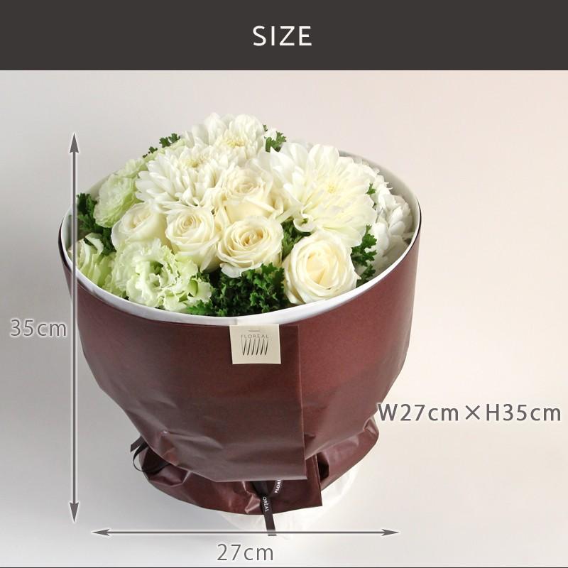 【フロレアルオリジナルのラウンドブーケ】■サイズW27cm H35cm■商品内容・バラ・スプレーバラ・カーネーション・ダリア・トルコキキョウ・グリーン※季節や入荷状況(優良配送等)などにより花材ほか内容が変わる場合がございます。ご了承ください。■お届け日時ご希望のお届け日時は、【ご購入手続き画面】の【お届け日時指定】欄で、<土・日・祝・臨時休業日を除く3日後>から選ぶことが出来ます。 「優良配送」 商品は<土・日・祝・臨時休業日を除いて翌日のお届け*時間指定*>となります。≪北海道・青森、中国、四国、九州※≫の【配送2日地域】は対象外です。※配送会社によっては一部エリアが異なります。※沖縄に離島や郡部、冬季(12-3月)の北海道など、一部お届けできない地域がございます。<以下、無料サービスがご選択可>・【お届け画像配信サービス】・【手提げ用紙袋サービス】・添えるメッセージは、【後ほど】「メッセージ入力欄」にご記入下さい。