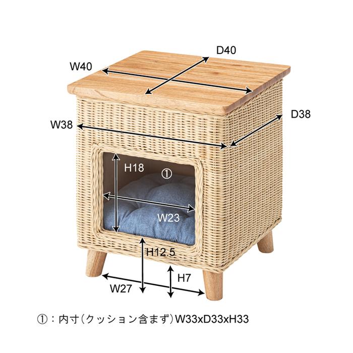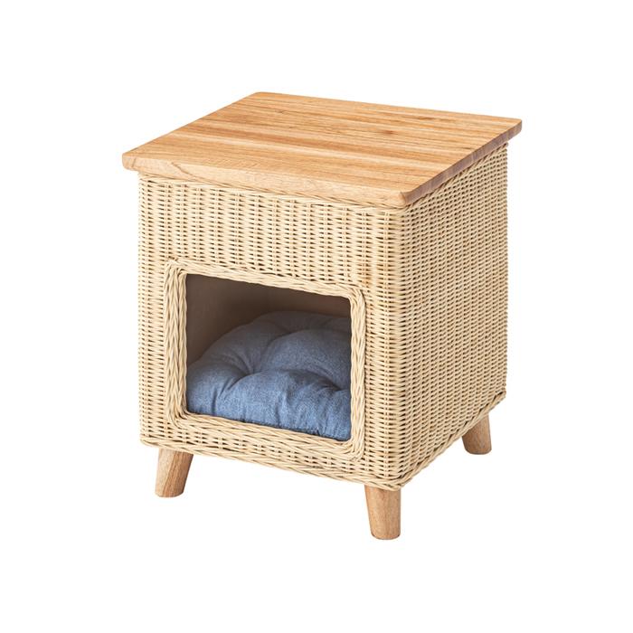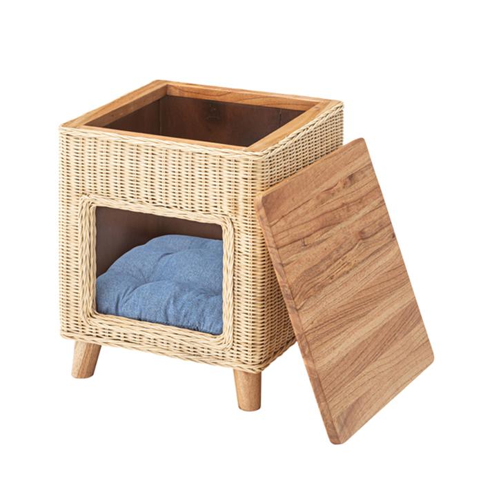 【値下げ】 ペットハウススツール スツール テーブル ペットハウス ペットベット 犬 猫 ペット クッション付き 脚付き 天板付き 天然木 木製 ラタン