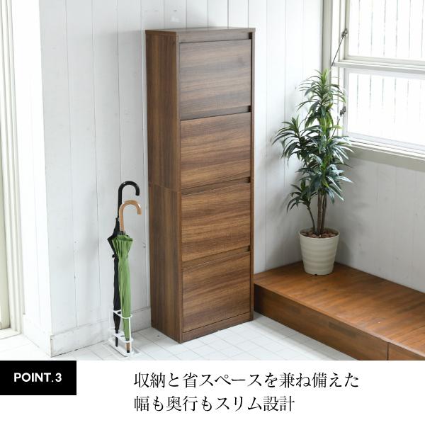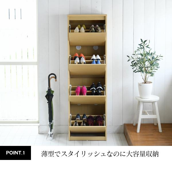下駄箱 スリム 4段 フラップ 扉 付き 幅49 奥行29 高さ161 大容量 最大16足 薄型 靴箱 シューズボックス ハイタイプ 収納 靴収納ラック 靴収納 玄関収納