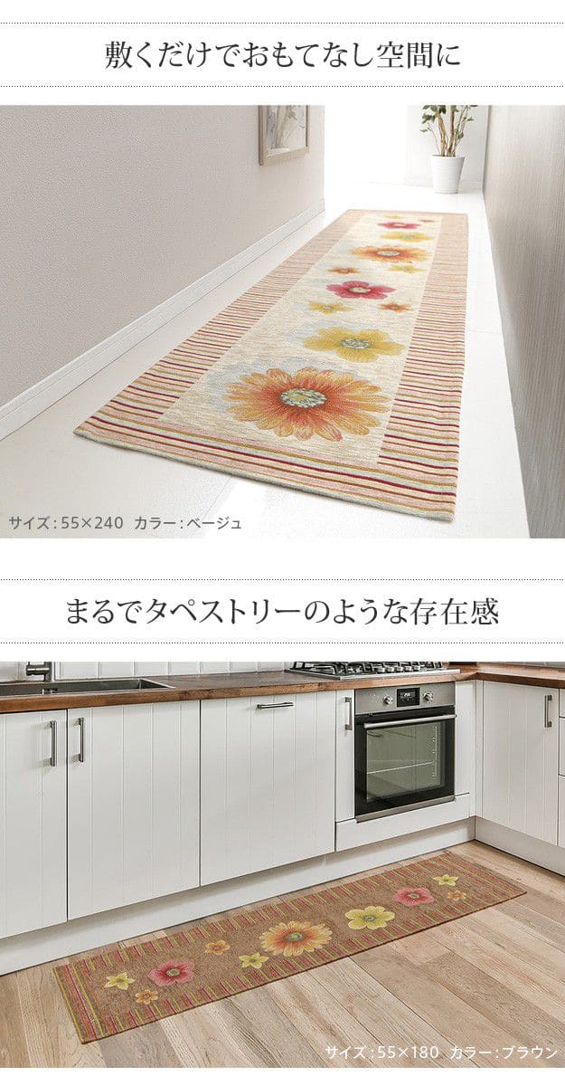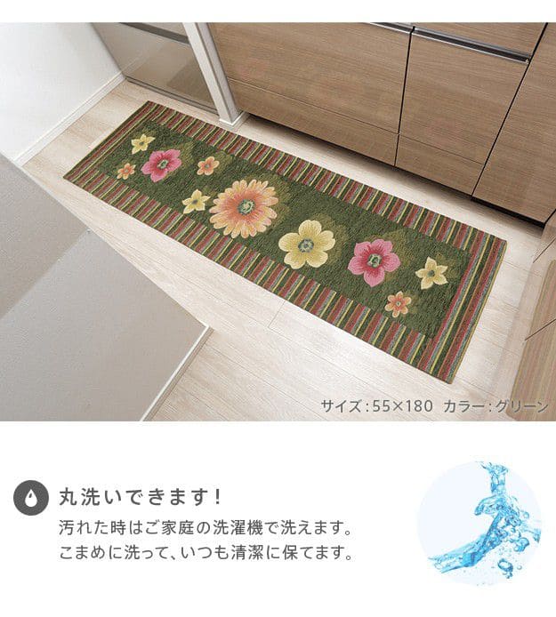 キッチンマット 洗える 花 ロング 滑り止め 240 55 薄手 洗濯 丸洗い 床暖房 滑りにくい 長め 55×240 大きい ロングサイズ 幅広 おしゃれ ジャガード