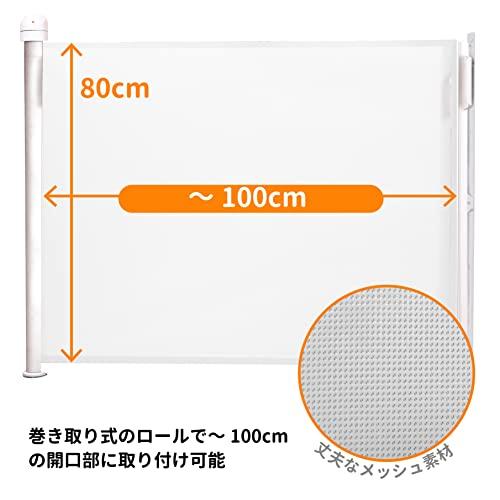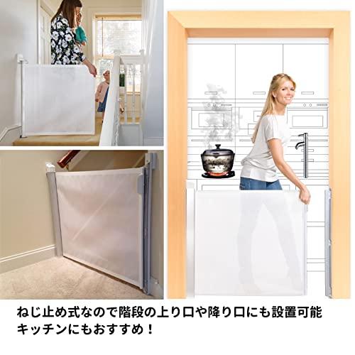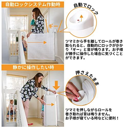 ・ホワイト 1個 (x 1) 19484105・[対象] 6ヶ月 ~ 24ヶ月・ロール式・[本体サイズ] 収納部/6.5cm角 X 高さ:90cm、ロール部/高さ:80cm 長さ:9~100cm、ロール受け板:幅5cm X 厚さ1.5cm X 高さ84cm・[素材] 軸:アルミニウム、ロール:非フタル酸PVC、プルスチック:ポリアミド・ヨーロッパ安全基準EN1930-2000 米国安全基準ASTMF1004-12優美なスウェーデンデザインのロール巻き取り式のセーフティゲート。 取り付けは100cmまでの間口を選ばない自在幅。 世界中で発売されているヨーロッパ・米国安全基準合格の信頼性。 ネジ止め固定式なのでつまづかず、階段の最上段にも設置できる確実性。 使用しない時はロールが収納されるのですっきりインテリアを壊しません。 ロールは耐久性・衝撃性に優れたメッシュ生地。シースルーで向こう側の動きが分かります。 軸上部のツマミの操作でロールを開け閉めするので子供が勝手に操作できず安心です。 ロールが巻き上がる時ギーという音がなります。万が一開いた場合の警告音になります。 ロックの解除ボタンを押したまま開けると音を消せるます。夜中やお子様が睡眠中などに。