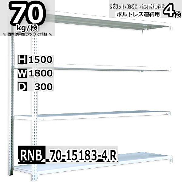 スチールラック 幅180×奥行30×高さ150cm 4段 耐荷重70kg/段 中量棚 業務用 ボルトレス W180×D30×H150cm連結用(支柱2本) スチール棚 収納 棚